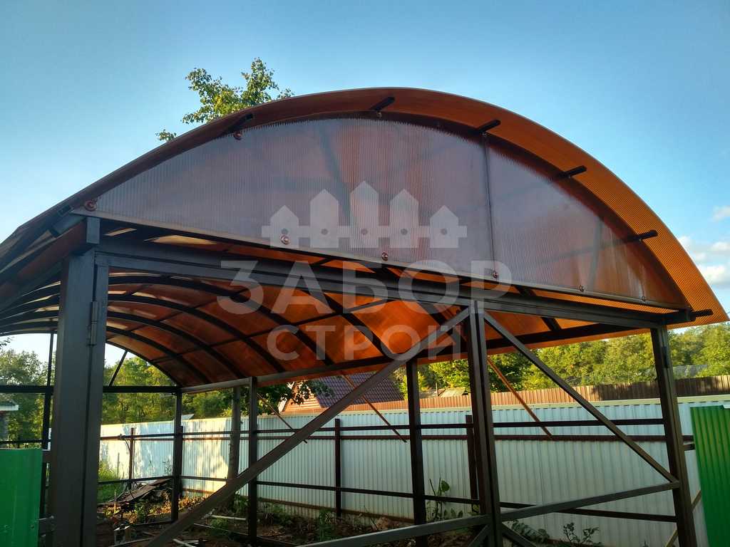Поэтому компания "Навес Строй" настоятельно рекомендует не экономить, а усилить каркас арочного навеса более жёсткими профилями с увеличенной толщиной металла и количеством несущих ферм.