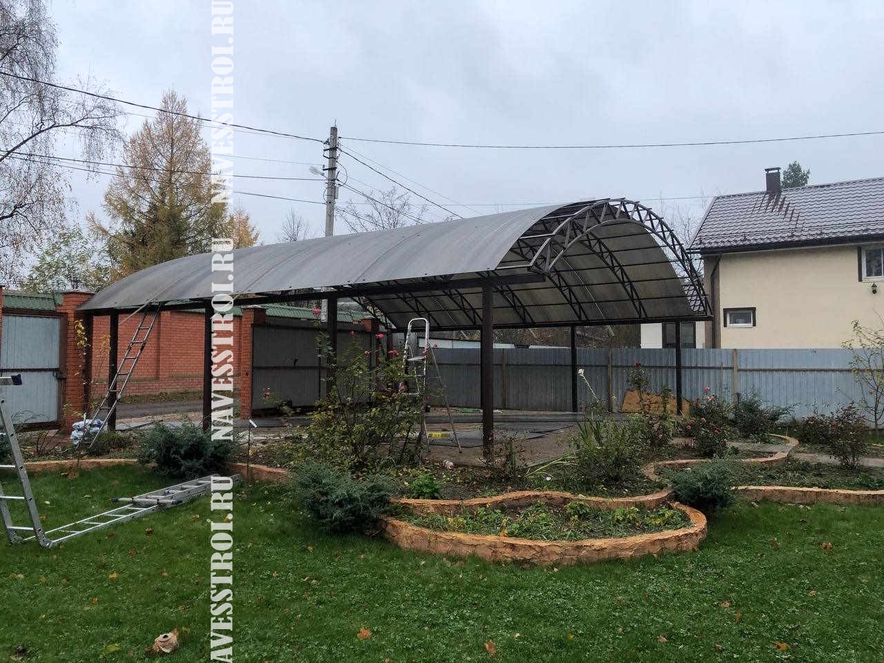 За день на даче изготовили арочный навес 5 на 7 с покрытием поликарбоната. Привезли уже готовые крашенные фермы и весь остальной материал. Все за собой убрали и увезли мусор. Молодцы!