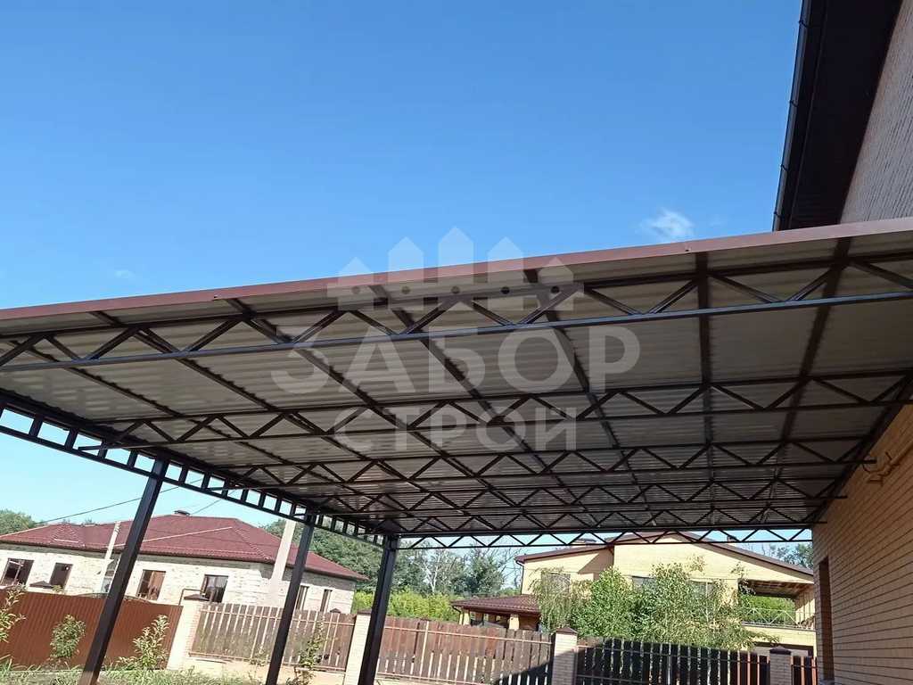 Поэтому компания "Навес Строй" настоятельно рекомендует не экономить, а усилить каркас навеса из профнастила более жёсткими профилями с увеличенной толщиной металла и количеством несущих ферм.
